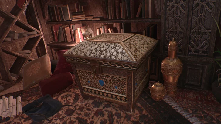 Сундук со снаряжением находится в помещении под куполом, самой высокой башни Большого Бимаристана.