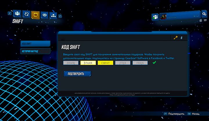 SHiFT — это бесплатная программа поощрения поклонников Gearbox Software, которая отправляет подписчикам коды SHiFT для использования в меню Borderland.