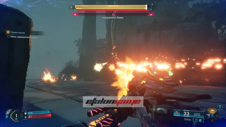 После ролика начнется бой с надзирателем Вреддом. Сражение здесь простое: держите дистанцию, стреляйте в босса и не забывайте смещаться, чтобы не ловить лишний урон.
