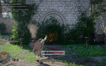 Когда снова получите управление Клиффом, пройдите чуть вперёд, и игра подскажет использовать огненную стрелу на кустах, закрывающих дверь. Натяните стрелу, поднесите наконечник к ближайшему факелу, чтобы поджечь его, а затем выстрелите в заросли.