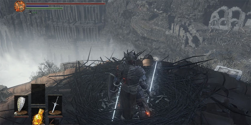 Их гнездо находится на крыше Храма Огня. Чтобы добраться туда, Вы должны будете купить Ключ от башни у Служанки. За него придётся отдать 20,000 душ. Ключ, также, выпадает при убийстве Ирины из Карима. Поднимитесь по лестнице справа на верхний этаж, затем выйдите на улицу через альковы. Используйте ключ, чтобы войти в башню и идите всё время вверх. Прыгните на крышу с моста. Если Вы думаете, что у Вас недостаточно здоровья, чтобы пережить падение, то лучше сначала вскочить на столб. Гнездо будет в середине круглой части крыши. Не забудьте ударить по лестнице, чтобы создать короткий путь.
