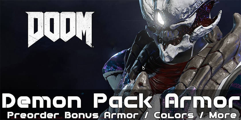 Игроки, сделавшие предзаказ стандартной или коллекционной версии DOOM, получат дополнение Demon Multiplayer Pack, который включает такие приятные мелочи, как броня демона с тремя различными скинами, шестью цветами металлик и тремя шаблонами логотипа для Вашего оружия и брони, а также набор из шести Модулей Взлома – дающие Вам преимущество в многопользовательской игре.