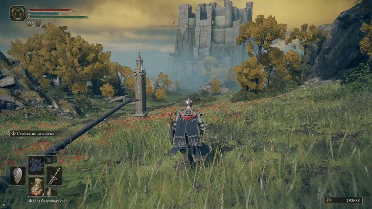 Пройдите через отверстие в крепости и спуститесь по тропинке, не забывая о больших стрелах, пускаемых в вас из замка. Возьмите возле стелы Карту «Плачущего полуострова».