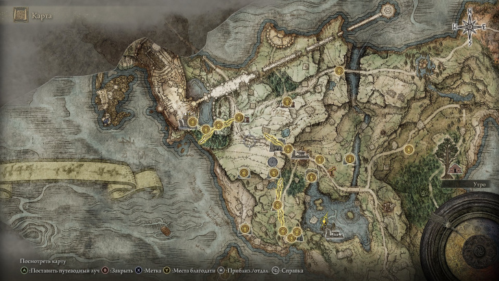 Идите вперёд и взаимодействуйте с местом благодати. Вы познакомитесь с механикой благодати, где некоторые её участки на карте будут указывать направление, в котором вы должны двигаться для продвижения к основным сюжетным целям.