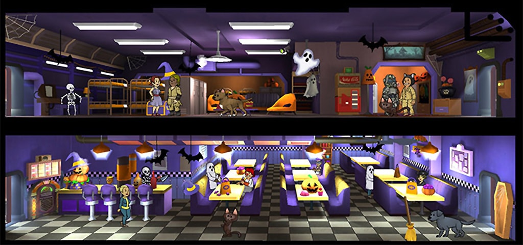 Праздники, в Убежище будут праздники: уже второй год подряд в Убежище отмечают праздники – Хэллоуин, День благодарения и Рождество. В октябре Вы сможете получить костюмы на тему Хэллоуина как вознаграждение за выполнение заданий, также, на ограниченный срок, станут доступными жуткие темы комнат.