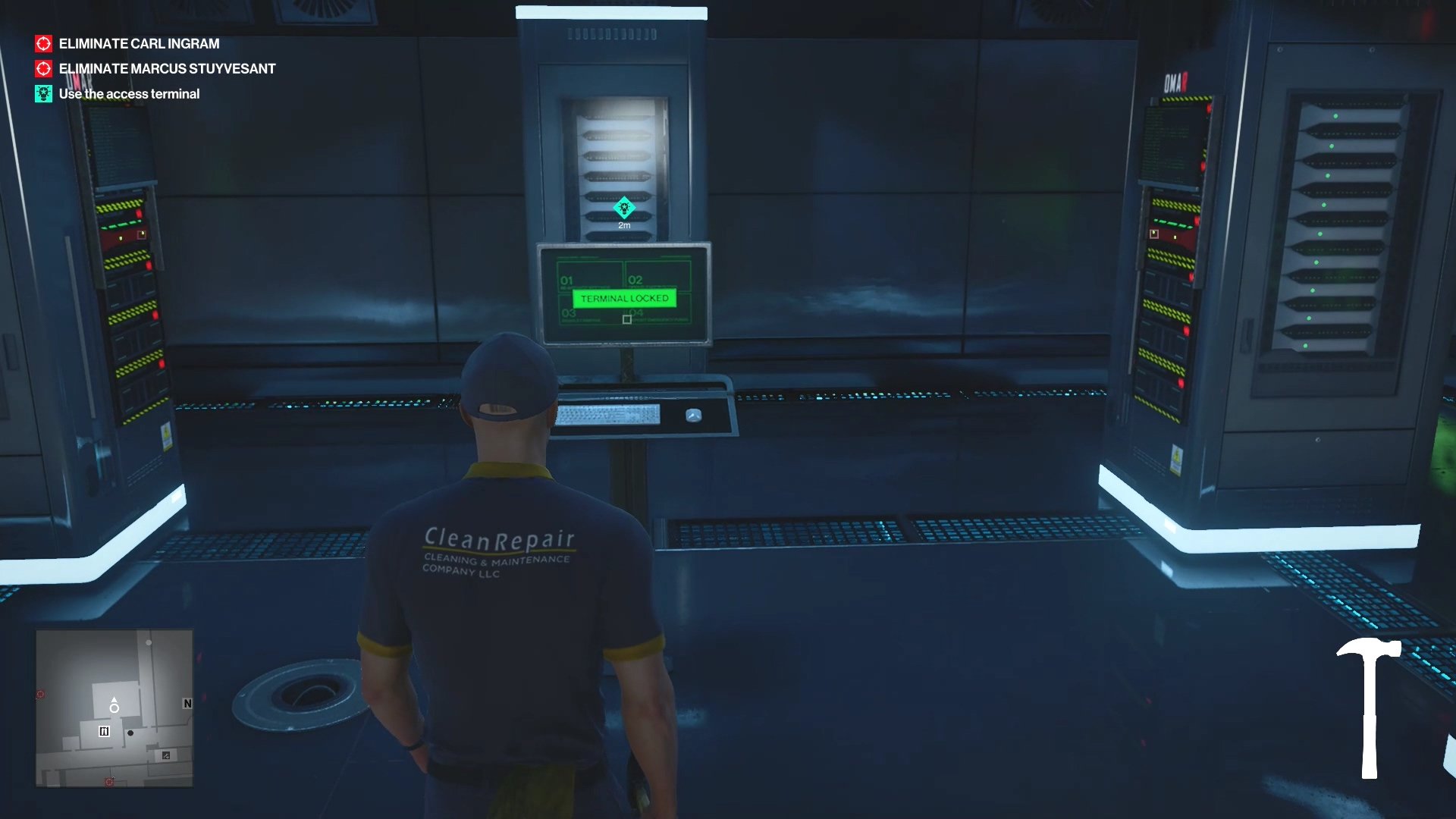 Осмотрите терминал в серверной. Он заблокирован, и Gray предложит перезагрузить одну из четырёх серверных стоек, чтобы получить к ней доступ. Хотя вы МОЖЕТЕ это сделать, это вызовет тревогу и заставит нескольких охранников пентхауса войти в комнату. Вам придётся вывести из строя или убить всех до единого, чтобы избежать наказания за это.