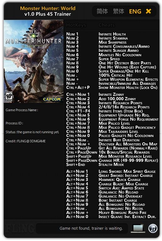 Скачать трейнер Monster Hunter World v20181030-v20181109 Plus 26 Trainer.zip
