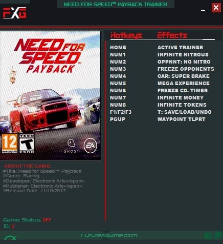 Скачать трейнер Need for Speed Payback v1.0.51.15364 +10 Trainer.zip