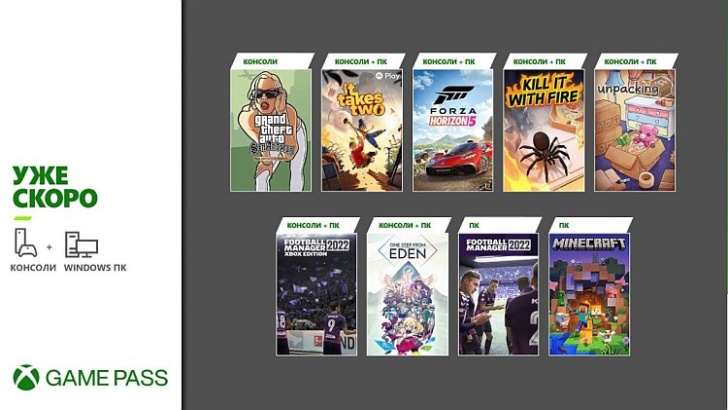 Во вторник, 9 ноября, за этими играми последуют Football Manager 2022 (ПК), FootbaXbox Game Passll Manager 2022: Xbox Edition (Облако, Консоль и ПК) и Forza Horizon 5 (Облако, Консоль и ПК).