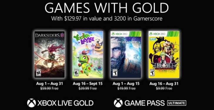 Darksiders 3 станет доступен для подписчиков Xbox Live Gold с 1 по 31 августа. Yooka-Laylee будет доступен с 16 августа по 15 сентября.