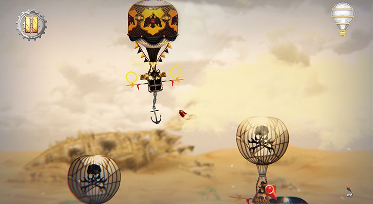 Самая интересная часть игры происходит в небе. Вам нужно уничтожать противников, протыкая их шар своим якорем или расстреливая из пушек с расстояния. Но сделать это не так просто, ваш шар передвигается с существенной инерцией, а снаряд после выстрела летит по определённой траектории.