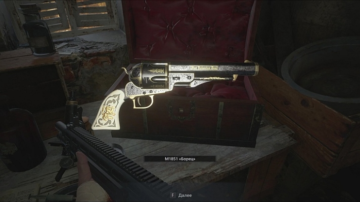 Прочтите файл «Дневник экспериментов» Моро на столе, а затем откройте ближайший сундук, чтобы найти револьвер «M1851 Боец», настоящий источник мощи.