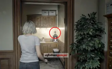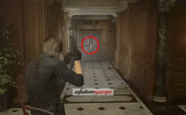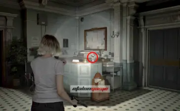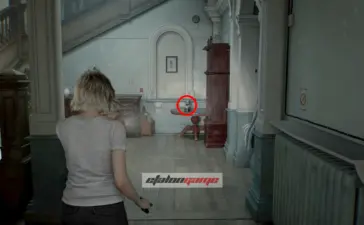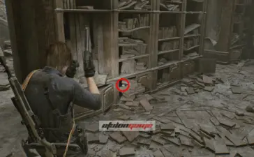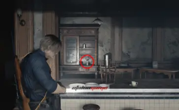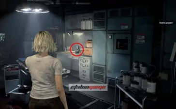 Архивный отдел: фигурку слышно в этой комнате. Она спрятана в шкафу, который только Леон может разбить своим топориком.