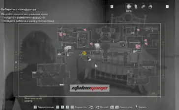 Спальня: вставьте соединительный штекер в котельной, в коридоре справа от комнаты охраны на карте, отмеченном жёлтым значком «!». Это откроет сразу несколько помещений. Вам нужна дверь справа от места, куда вставляется штекер, это и есть спальня. Фигурка стоит на телевизоре.