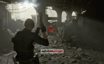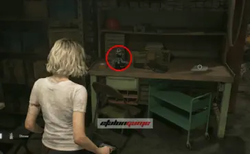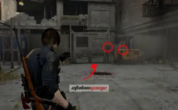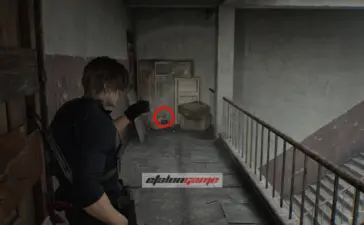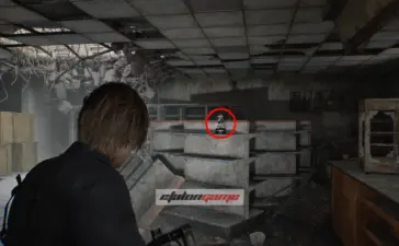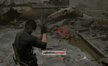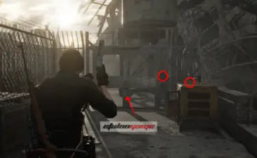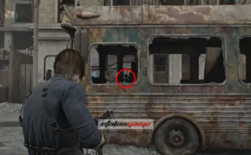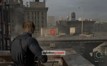 Крыша логистического склада: после того как подберёте распределитель на крыше, Леон автоматически воспользуется биноклем и осмотрит район. Затем развернитесь к лифту и посмотрите на шоссе, на запад по карте. Фигурка стоит на разбитой машине, на фургоне перед грузовиком. Её нужно сбить из снайперской винтовки.