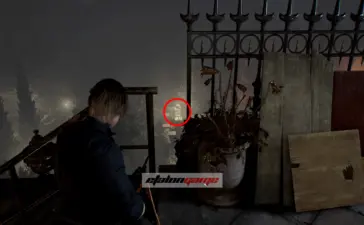 Как только управление снова перейдёт к Леону, перелезайте через окно перед собой. Бегите по крыше, пока не спрыгнете вниз слева. Перед вами будет лестница. Поднимитесь по ней, но в деревянную дверь пока не заходите. На площадке поверните налево и прицельтесь вниз, в освещённую часть сада. Фигурка мистера Енота стоит на постаменте под одним из фонарей, поэтому сбивать её нужно из снайперской винтовки с прицелом. Это один из самых хитро спрятанных енотов в игре. На верхней площадке лестницы развернитесь примерно на 90 градусов и смотрите в проём между лестницей и металлическим забором, слегка опустив прицел: фигурка стоит под вторым садовым фонарём.