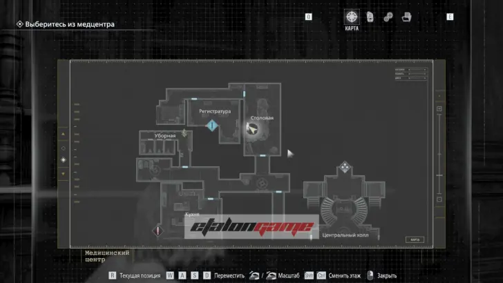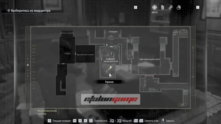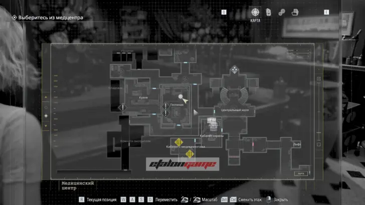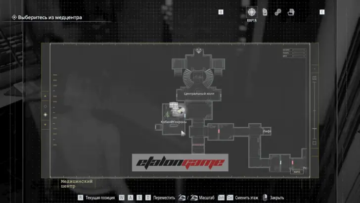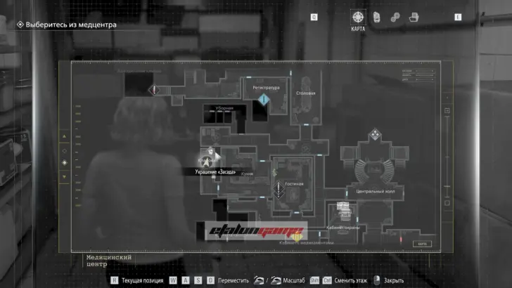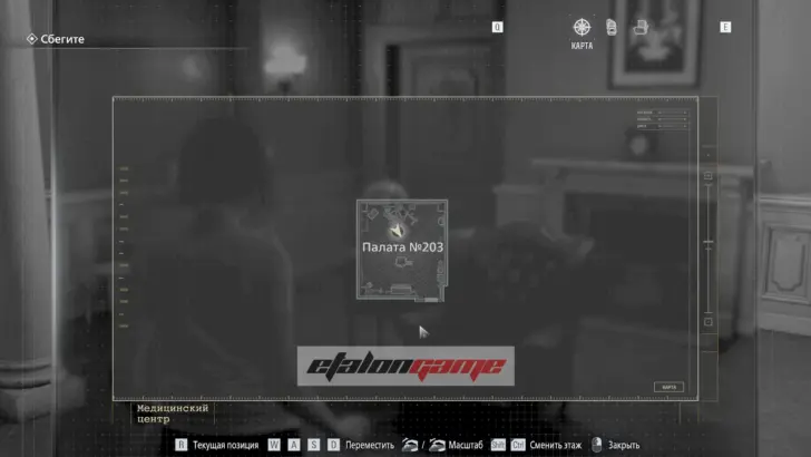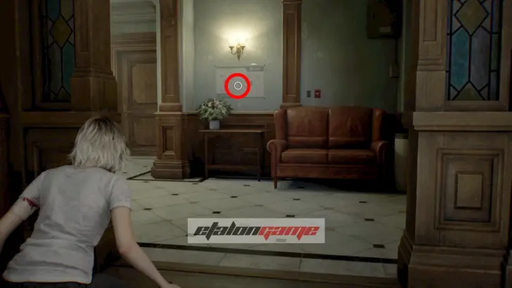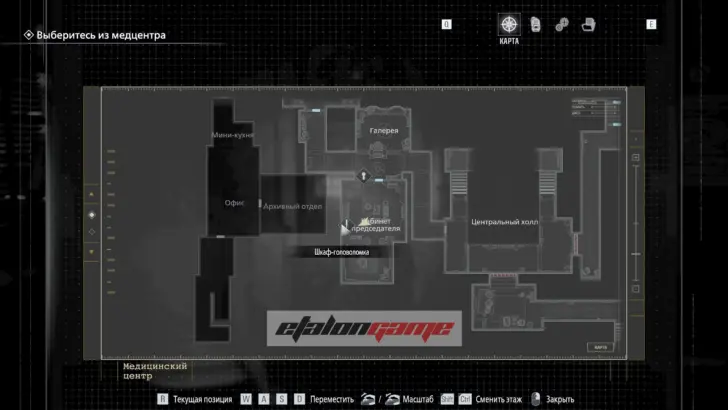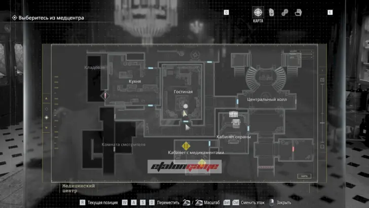 В безопасной комнате пройдите через дверь с красной подсветкой, чтобы автоматически получить предмет. Используйте карту в Центральном холле на двери в западное крыло.