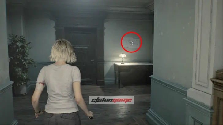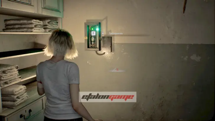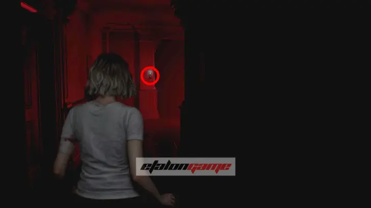 Выходите в коридор и идите направо. Добравшись до участка с красным светом, взаимодействуйте с выключателем на стене, чтобы зажечь лампу в дальнем конце коридора. Пока там темно, заходить в неосвещённые комнаты нельзя, так что без этого дальше не пройти. После включения света можно спокойно дойти до самого конца прохода.