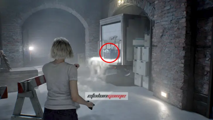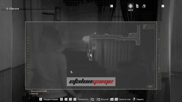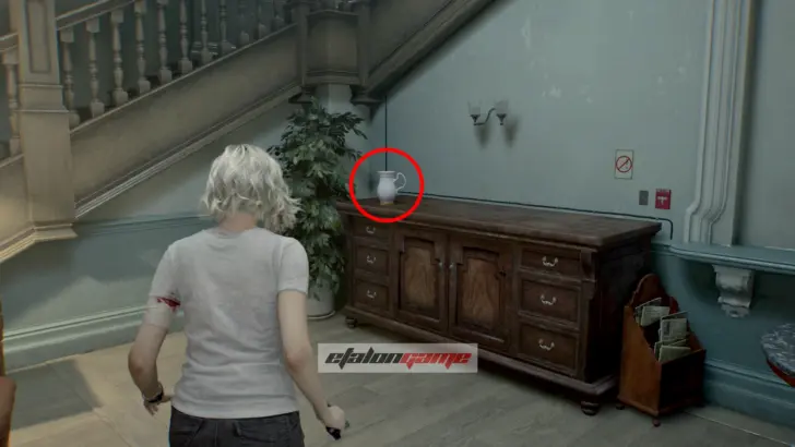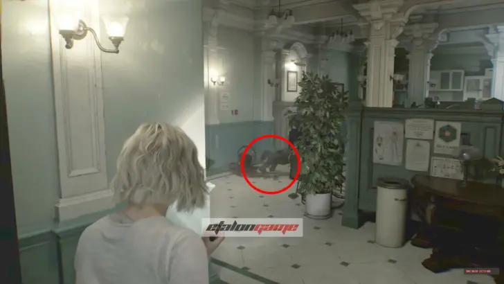 Чудовище проломит дверь и тут же снова погонится за вами, так что придётся ещё раз отступить в стартовую комнату. Когда оно исчезнет, враг начнёт бродить по коридору и перекроет путь. Снова зайдите на пост медсестры через юго-восточную дверь и выгляните через северный выход, где монстр выбил проход. Здесь пригодится Пустая бутылка, найденная ранее: бросьте её в восточную часть коридора, чтобы увести врага и без помех вернуться в безопасную комнату.