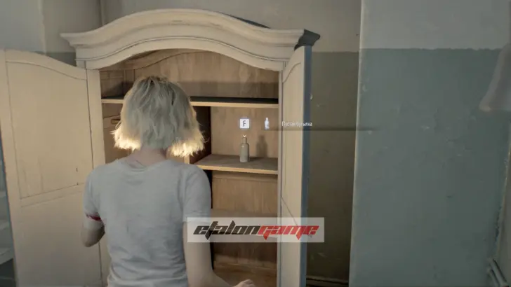Перед уходом осмотрите шкафчик и заберите Пустую бутылку. Её можно бросать, чтобы отвлекать врагов, и хотя бы одну такую бутылку лучше приберечь для трофея, который понадобится позже.