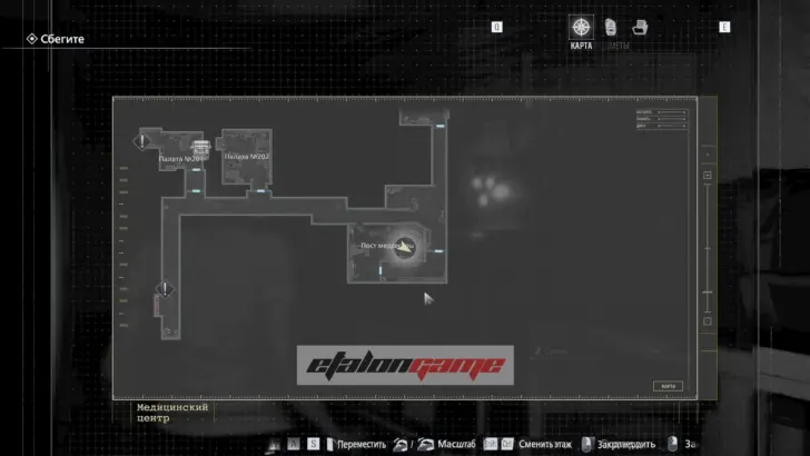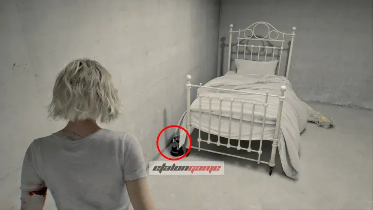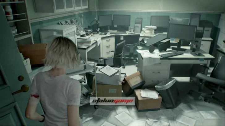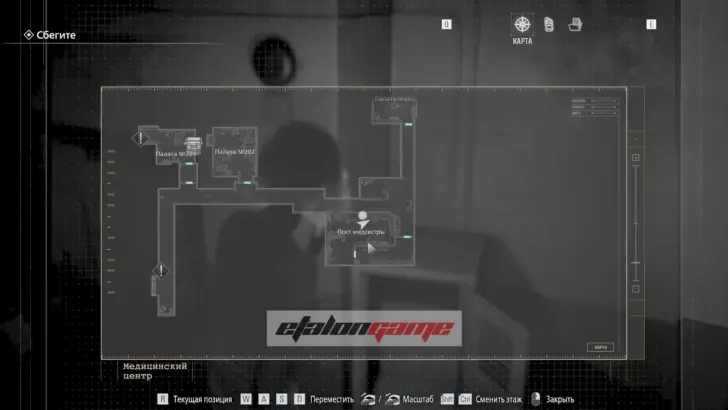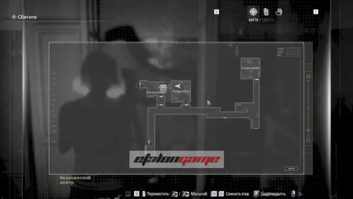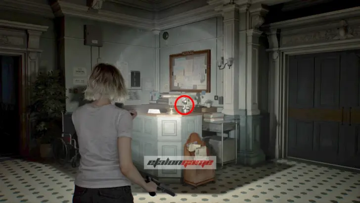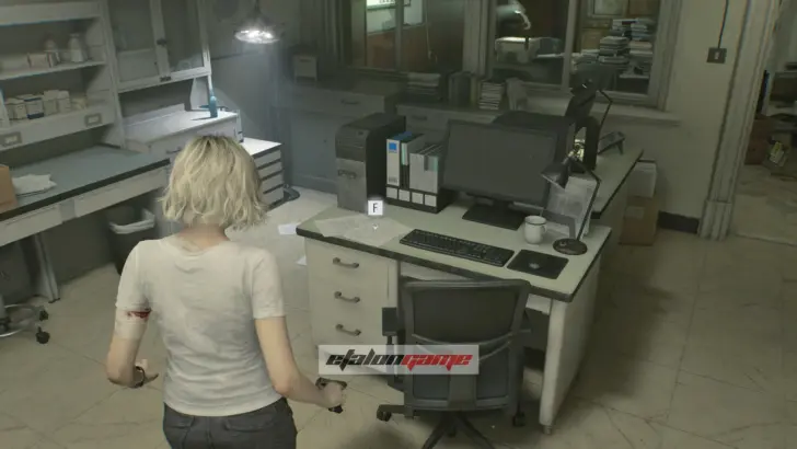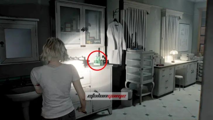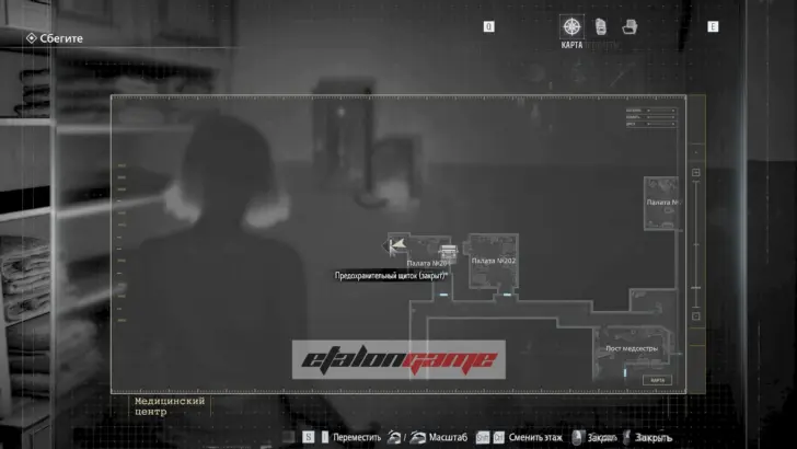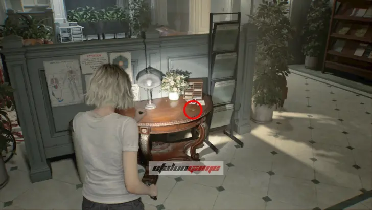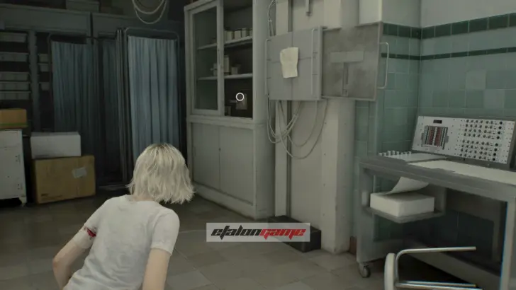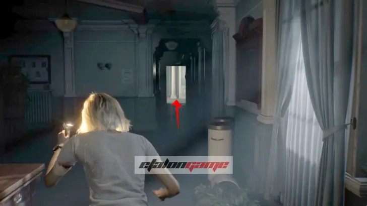 Теперь выходите обратно в коридор и направляйтесь к посту медсестры в юго-восточном углу. Здесь монстр впервые атакует вас в этой зоне, и придётся срочно бежать назад в комнату, где Грейс очнулась под светом. В освещённые помещения чудовище не заходит, поэтому на этом отрезке именно так и нужно от него спасаться.