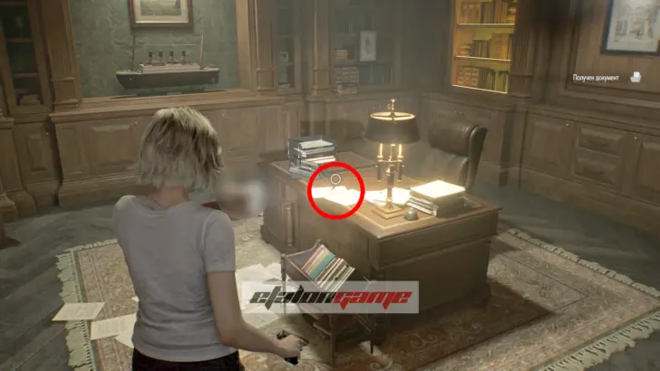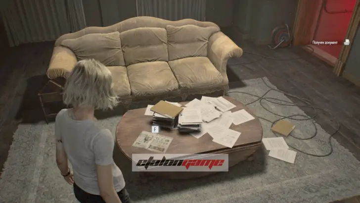 Чердак: когда снова начнёте играть за Леона, идите вперёд и пройдите через следующую дверь. Документ лежит в глубине комнаты, напротив шкафа, который нужно сдвинуть для продвижения.