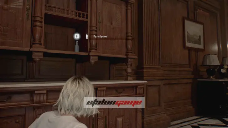 Столовая: слева, за столом, на полке. Обязательно подберите её и либо носите с собой, либо уберите в ящик хранения. Она понадобится позже для трофея «Внутренний конфликт». НЕ ВЫБРАСЫВАЙТЕ БУТЫЛКУ!