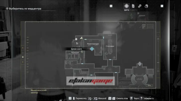 Конференц-зал: зайдите в помещение прямо рядом с предыдущим файлом. Монета лежит на белом столе сразу после входа.