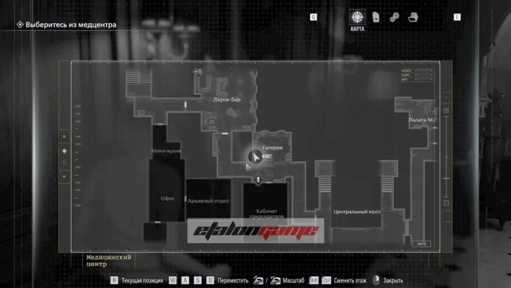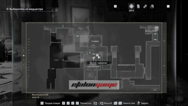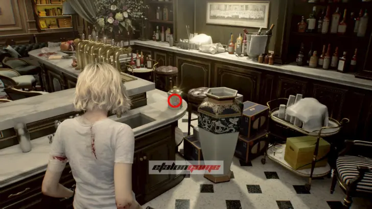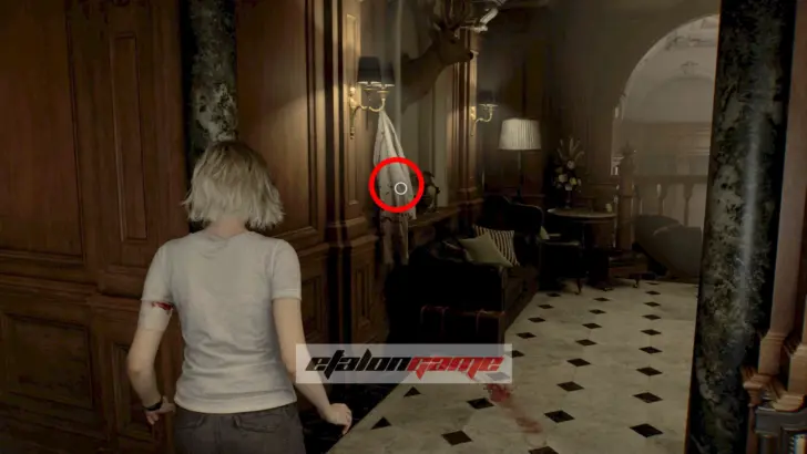 Галерея: после зала с баром идите по коридору и сверните налево, затем осмотрите белый халат на стене.