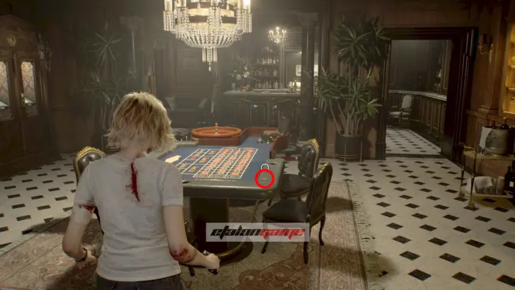Гостиная: вернитесь вниз через западное крыло, вставьте Красный камень в дверь гостиной и заберите монету со стола для рулетки.