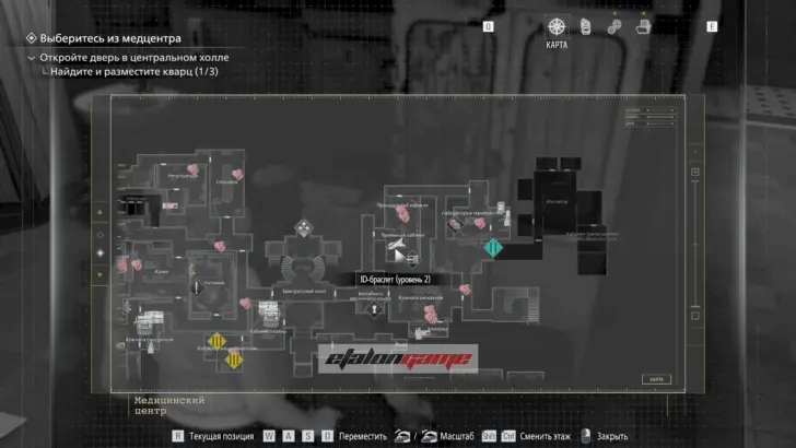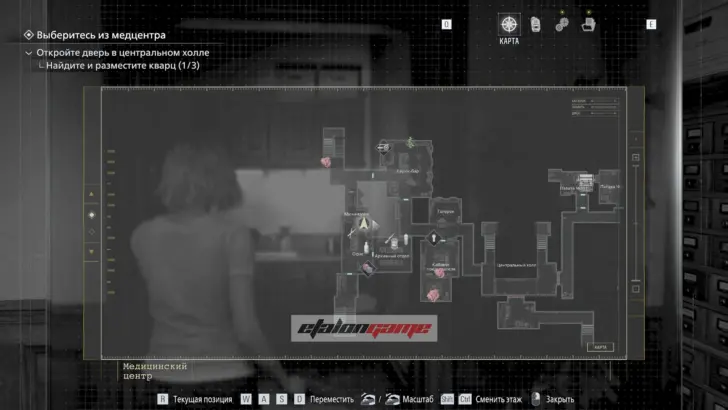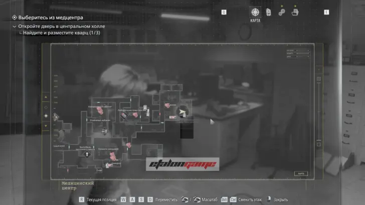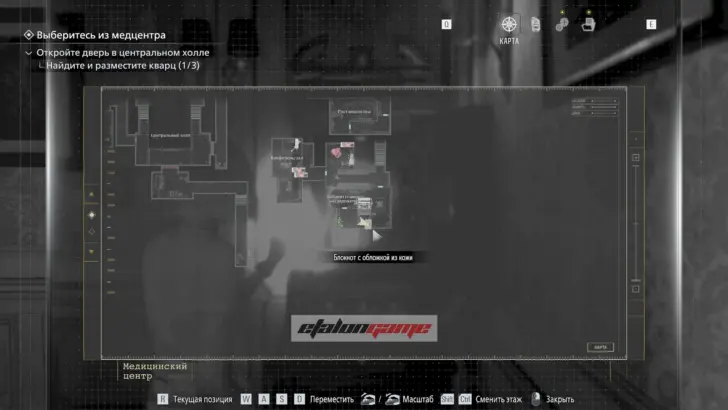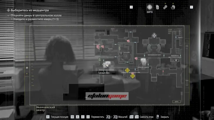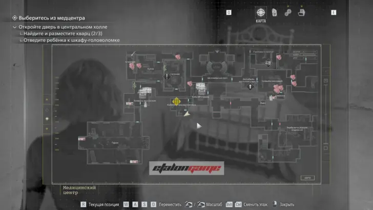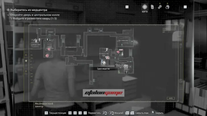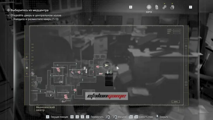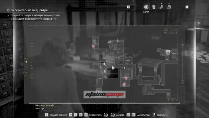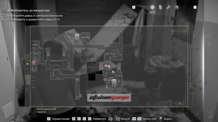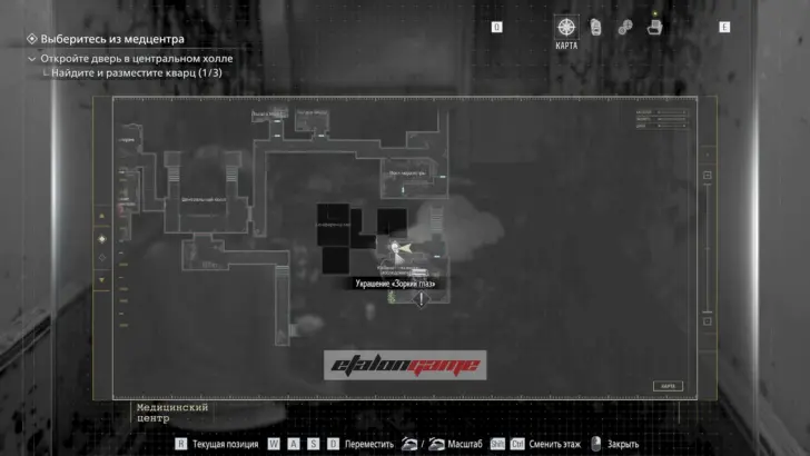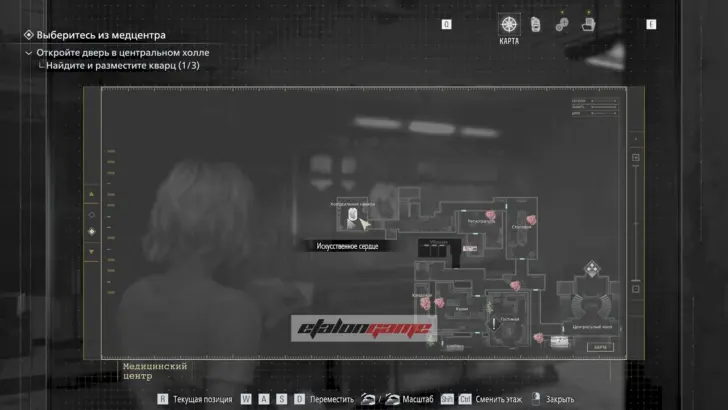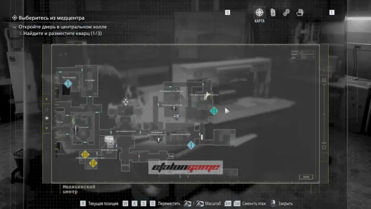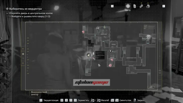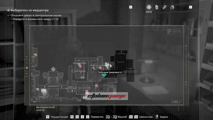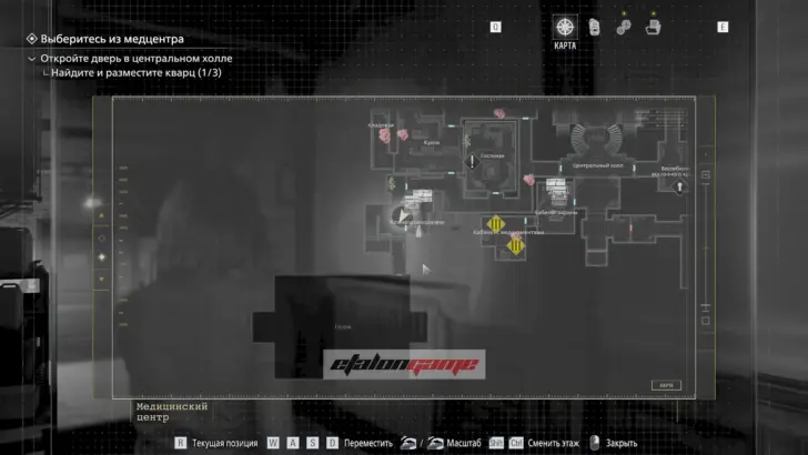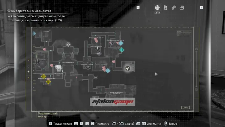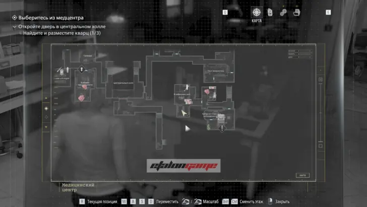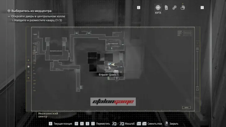 Главная цель на этом этапе — собрать три кварца и открыть ими дверь в Центральном холле. После подбора можно складывать кварцы в ящик предметов либо сразу вставлять их в дверь по одному.