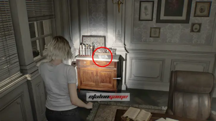 (На сложности «Безумие» предмет слегка смещён вглубь кабинета, туда, где находится зомби.)