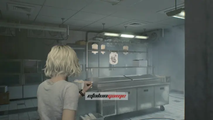 В западном крыле идите по левому коридору через кухню. Здесь вам встретится Шеф-повар, и пока с ним лучше не связываться. Он ходит по кухне, возится у столов и у ванны на тележке, так что можно дождаться, когда он отойдёт, и проскользнуть через дверь с другой стороны. Затем двигайтесь вправо и либо разберитесь с зомби у выключателя, либо просто обойдите его. После этого откройте дверь справа, чтобы разблокировать короткий путь обратно в центральную часть.