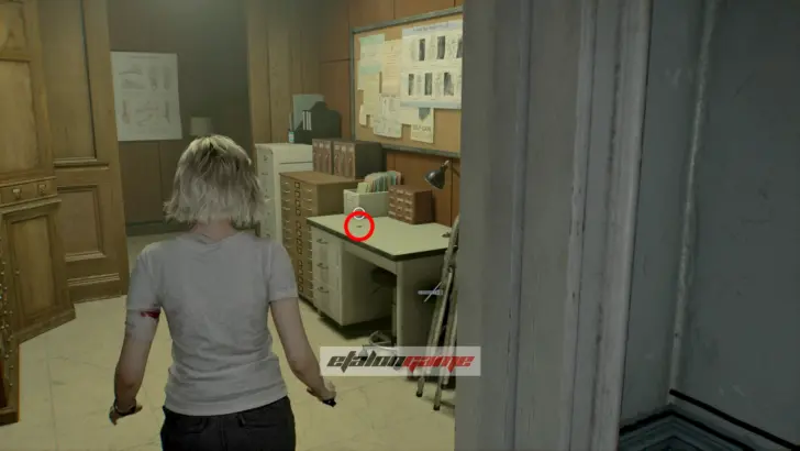 Возвращайтесь к двери, мимо которой проходили раньше, и откройте её с помощью Ключа с ангелом. Эта комната служит местным аналогом безопасной комнаты в медцентре «Роудс-Хилл».
