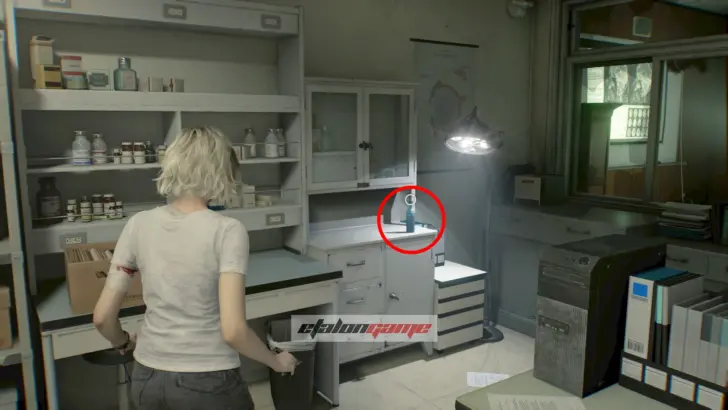 Кладовка: после получения ID-браслета спускайтесь вниз и откройте дверь первого уровня в комнате ожидания. Внутри лежит нужная проба. После этого не забудьте вернуться в лабораторию гематологии и использовать её на анализаторе. Откроются рецепты: мед-инъектор и патроны 12.7×55 мм.