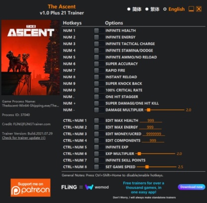The Ascent — Читы/Трейнер/Trainer v1.0 [+21] Fling