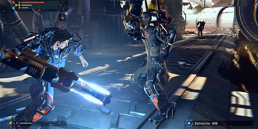 Враги — главная опасность в The Surge, есть несколько полезных инструментов для борьбы с ними. На раннем этапе игры вы найдёте имплантат, позволяющий видеть вражеские бары здоровья. Это очень важно для сбора экзоскелетного снаряжения — снарядите его как можно скорее.