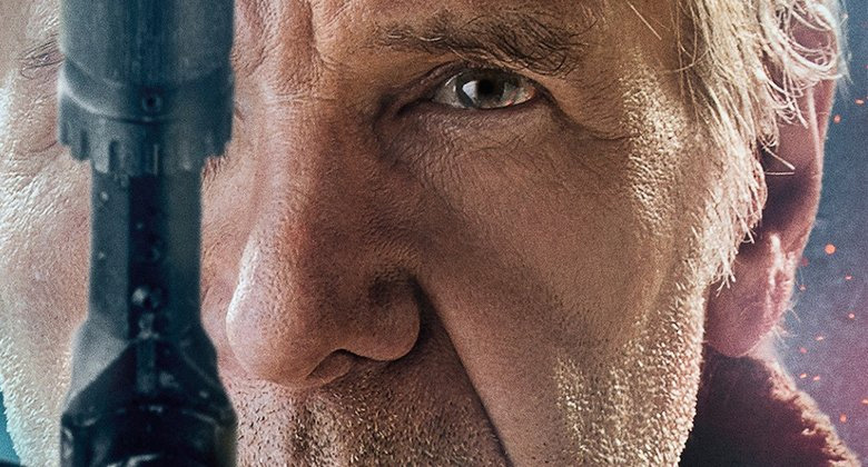 Рэй (Дейзи Ридли), Финн (Джон Бойега), Хан Соло (Харрисон Форд), Лея (Кэрри Фишер) и Кайло Рен (Адам Драйвер) — замечательный квинтет, который заслуживает такое масштабное представление. Каждый держит своё собственное оружие, за исключением Леи.